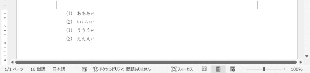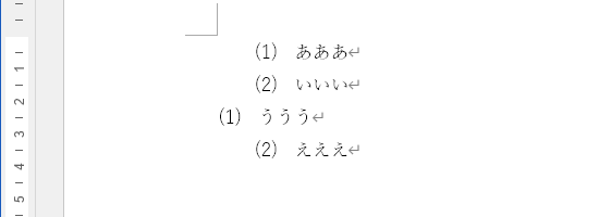 段落番号の途中で「1から再開」したときに、1番のインデントがズレることがあります。