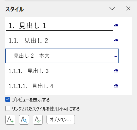 スタイルリストにある「見出し 2 - 本文」をクリックします。