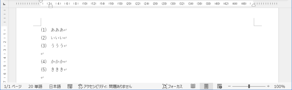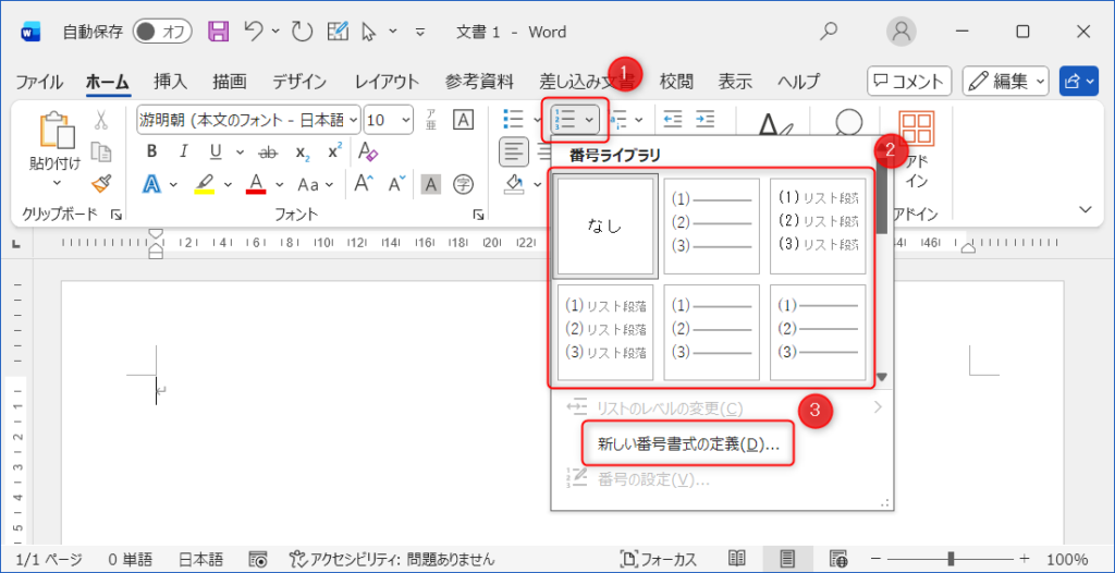 段落番号を設定すると、Enterキーを押すたびに自動的に番号がカウントアップします。